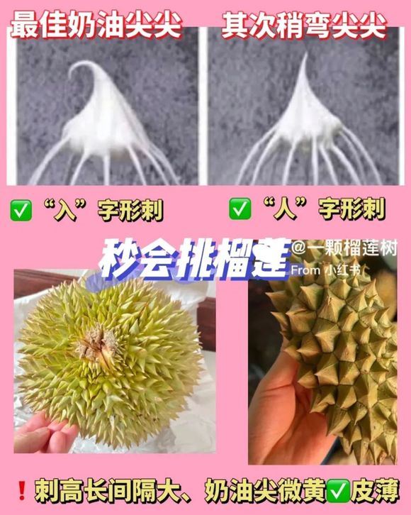 ▲ 小红书博主@一颗榴莲树分享的榴莲挑选法。图 / 小红书