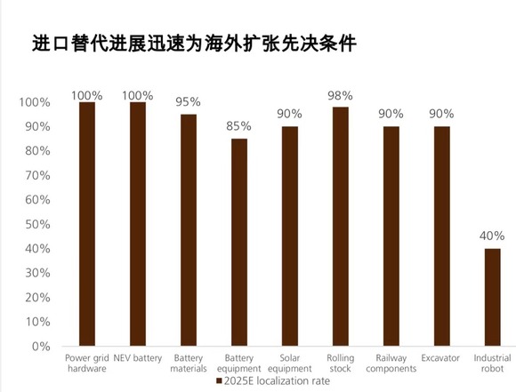 “2015年,国内资本品自给率不足50%,2025年有望提高至高度自足,届时多数产业自给率将在90%之上。”徐宾称。目前,中国的光伏、新能源汽车电池和电网行业已由国内供应商主导。