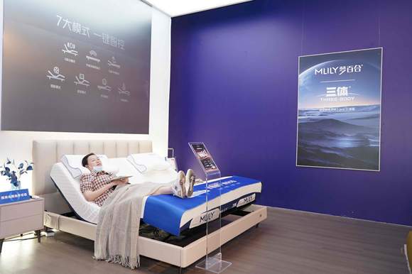 5月25日,梦百合在深圳时尚家居设计周上发布与《三体》跨界联名推出的智能床产品——0压智能床M3 Pro三体版。