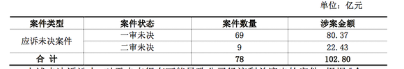 二是尚未达成和解的保底承诺相关案件,涉及案件数量6宗,涉案金额10.18亿元(本金8.36 亿元)。