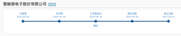根据公开信息,慧翰股份曾于2020年4月8日获得科创板的受理,2020年4月30日进入问询环节,2020年8月20日过会,拿到诸多公司梦寐以求的路条,2020年8月26日慧翰股份提交了注册文件,然而令人想不到的是,在2021年3月2日慧翰股份终止注册,登陆A股的旅程戛然而止。而终止注册的缘由,则是公司和其保荐机构提交了撤回的申请。