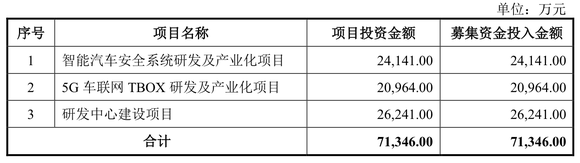 至于募资,这一次的7.1346亿元将投入到“智能汽车安全系统研发及产业化项目”、“5G车联网TBOX研发及产业化项目”、“研发中心建设项目”上,上一次的募投项目中则并无“智能汽车安全系统研发及产业化项目”。