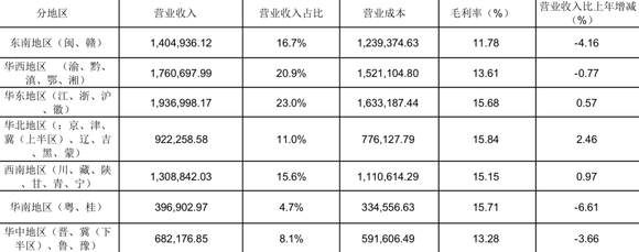 从其2022年营收区域分布及相应的毛利率水平中看出,它在东南地区(闽、赣)毛利率是所有区域中最低的一个区域,只有11.78%。对生鲜行业来说,这种利润水平远低于行业平均水平。