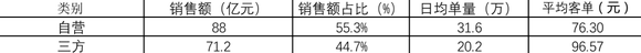 也就是说,其自营到家平均客单只有76元,远低于三方平台的96元的客单。自营到店的业务明显是亏损的,但相应的占比已经超过50%。