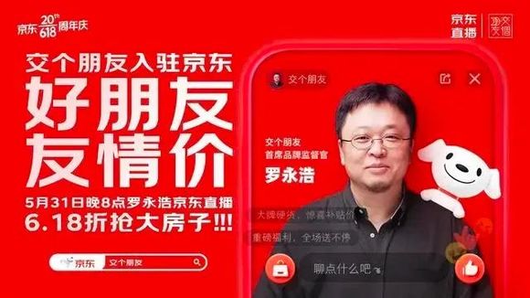 紧接着,交个朋友官宣:5月31日20点,罗永浩直播首秀,本场直播最大的噱头是6.18折卖房,有些与苹果天猫官旗直播对垒的意思。严格说,这并不是罗永浩的京东直播首秀,早在2016年,京东直播业务成立,罗永浩就举办过“老罗专场”。不过,当时罗永浩的身份还是锤子科技CEO。