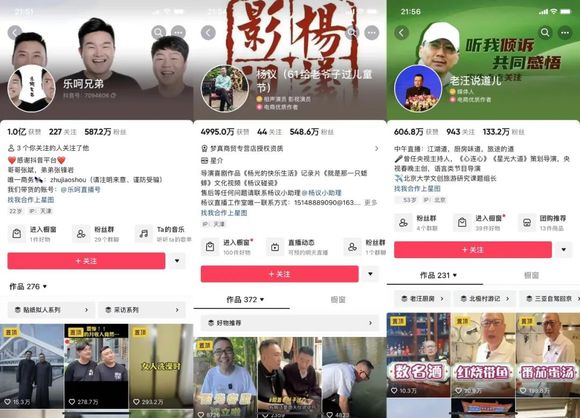 很多更有资历的相声演员同样在短视频平台很活跃,比如,已任职曲协主席的冯巩在抖音上的粉丝就超过了2400万,又比如,知名海青相声演员杨议的关注数量也有超过500万,曾经和郭德纲有过很深矛盾的汪洋,在短视屏平台也有133万粉丝……当然,无论是新势力还是老资格,他们的短视频和直播多数都是讲段子和带货或者是讲述文玩,并没有在直播间说相声。