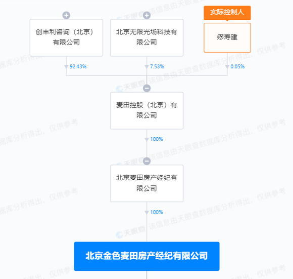 此前有媒体报道称,抖音旗下房产业务“幸福里”近日宣布退出线下交易回归线上,将现有线下业务“小麦房产”整体转让给麦田。同时,抖音集团北京无限光场科技有限公司(下称“无限光场”)以约7.53%的小比例入股麦田控股。