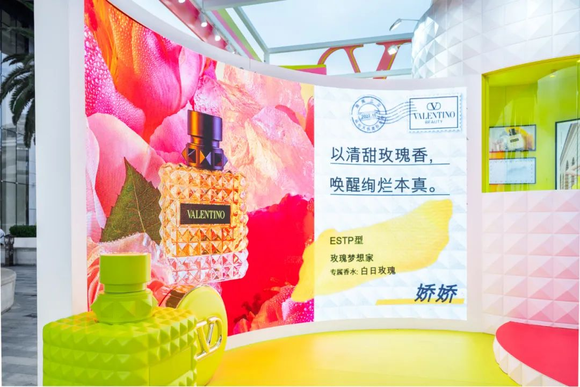 在香水体验方面,华伦天奴以沉浸式多感官和数字化体验,让消费者通过屏幕上的互动装置,根据MBTI测试结果,选择最适合自己的香味。
