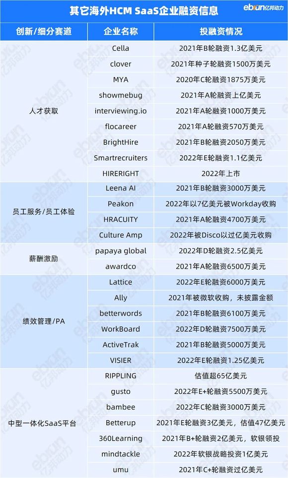 其他海外HCM SaaS也是近两年资本追逐的热点: