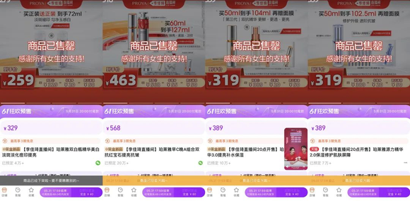 美妆头条记者发现,在李佳琦预售首日直播间有30多个单品销量超过10万件,珀莱雅双抗精华等19个单品更是直接库存售罄,“李佳琦618”“618预售”等话题也登上微博热搜,真正成为了2023年淘宝618大促的“擎天柱”。