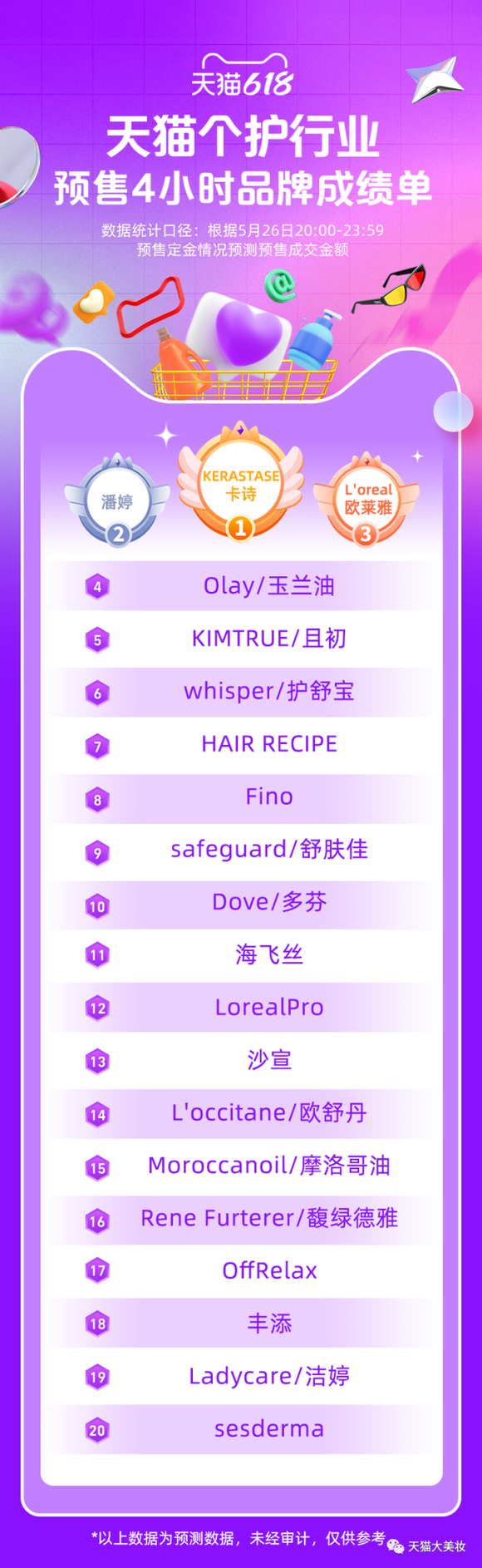 作为疫情阴霾散去后的首场电商超级大促,各大美妆品牌可谓是诚意满满。根据天猫美妆发布的预售4小时“成绩单”显示,在26日晚20:00-24:00的4小时内,多个品类的美妆TOP品牌预估销售额破亿。