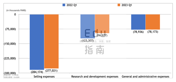 其中本季度高途公司销售费用为2.8亿元,与上一财年同期下降减少3%。研发费用本财季为9698万元,上一财年Q1为1.2亿元,本季度该项减少21%。一般与行政费用本季度为7817万元,上一财年同期为7894万元,同比减少1%。
