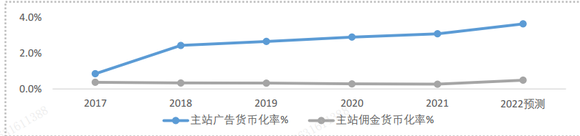 这个指标指的是平台运营模式下将GMV转化为营收的比率,广告和佣金是货币化能力的两条体现途径。