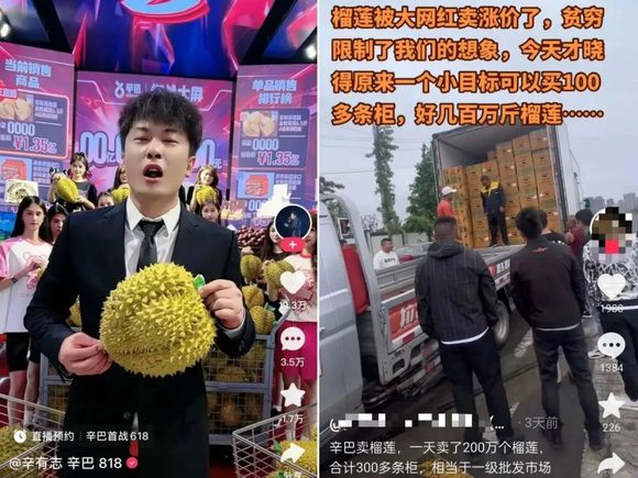 连锁反应还在继续。在社交媒体上,有网友把榴莲涨价的原因归结到了带货主播辛巴头上,称是辛巴压货封柜,不卖散户导致的结果,不过这种说法已经遭到了广州市市场监督管理局的辟谣。
