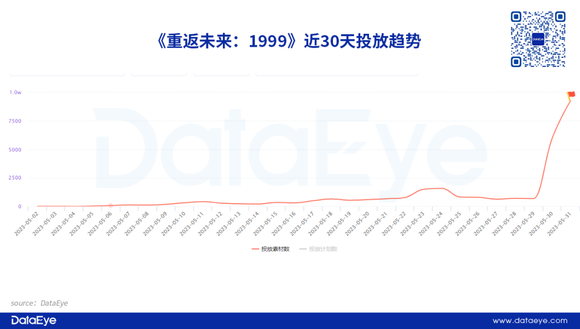 从投放量表现来看,《重返未来:1999》爆发式投放开局。