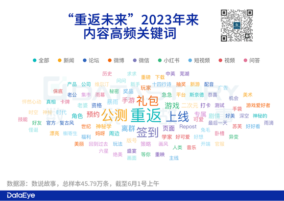 内容条数方面:截至6月1号上午10时,国内全网内容条数约为,45.79万。其中3月产品获得版号以及三测开启,在微博和B站形成了小规模爆发。进入5月,官方微博宣布产品定档,相关内容数逐渐增加,直到上线当天微博内容数完全释放,产生超过10万条博文。