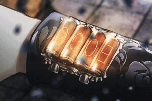 主角手臂上的辉光管计时器;