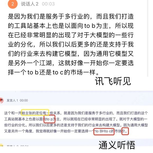 从听悟PK听见,通义千问PK星火,不难发现,从这场智能语音的技术应用往上看,实质是大模型的根本较量。