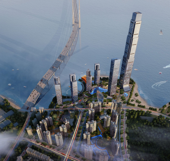 在2013年初航运集团30周年庆典上,时任佳兆业总裁金志刚盛装出席。彼时,航运集团五年战略中提到将大力发展旅游业和布局滨海地产。当年有关于该宗地块150万平方米建筑面积的规划图也在坊间流传,这里甚至规划建一栋超过828米迪拜塔的世界第一高楼。