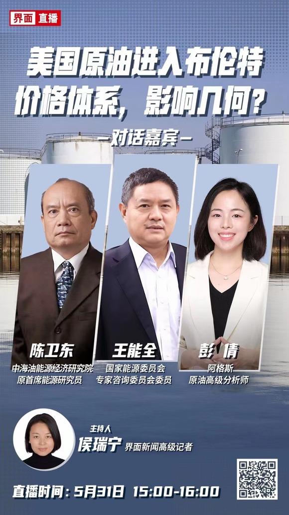 5月31日,界面新闻直播邀请业内专家对上述问题进行了深入探讨。他们分别是国家能源委员会专家咨询委员会委员王能全、中海油能源经济研究院原首席能源研究员陈卫东先生、阿格斯原油高级分析师彭倩。