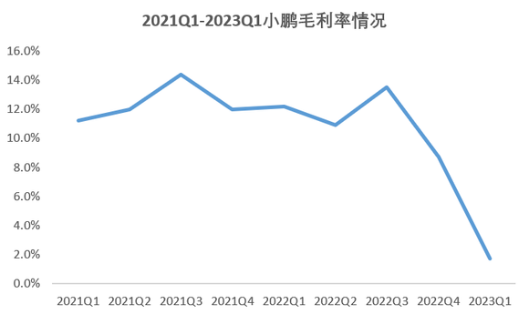 除了销量下滑之外,小鹏还面临着另一重挑战:毛利率在不断下降。