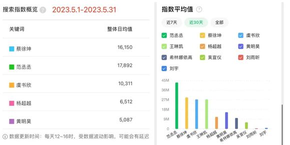 原本去年同期,虞书欣的整体数据还次于杨超越,更远低于蔡徐坤。但现在,她几乎已经可以和蔡徐坤平起平坐了。不仅如此,单看近一个月的百度指数与微信指数,连范丞丞都赶超蔡徐坤了。