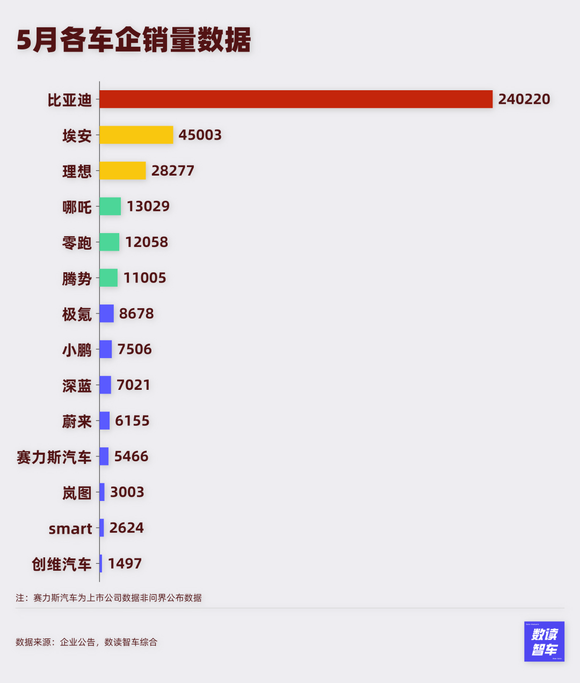 销量破万的有6家,比4月增加1家。而销量低于5000的车企有3家,上个月有4家,减少了1家,一升一降反映了本月车企积极的一面。