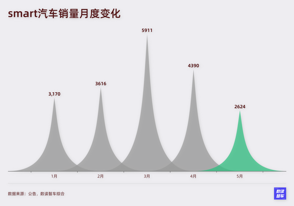 要说5月销量最惨淡的品牌,smart无疑是其中之一。2624的销量是今年以来的新低,是目前已公布销量车企品牌中下滑幅度最大的车企。