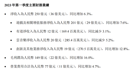 截取自网易Q1财报