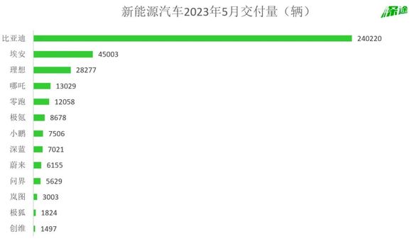 一方面,比亚迪5月交付240220辆,同比增长109.4%,超过其2022年12月份的235197辆,创历史新高。一众新势力车企在过万的门槛前徘徊时,比亚迪似乎实现了销量自由,月销几十万辆,年销几百万辆,这是多少新造车企业不可企及的数据,比亚迪却超预期完成。