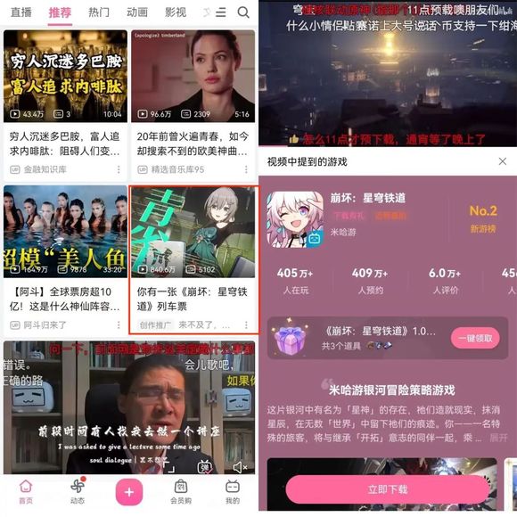 最亮眼的成绩,来自新游戏《崩坏:星穹铁道》。该游戏在今年4月上线首日,全球下载量突破两千万,登顶超过100个国家和地区的游戏下载榜,创下多项下载记录,作为该游戏的投放渠道之一,B站贡献了280万次下载。从商业变现的角度来看,游戏带来的利好还会继续。马上开始的暑假,向来是游戏广告投放的旺季。