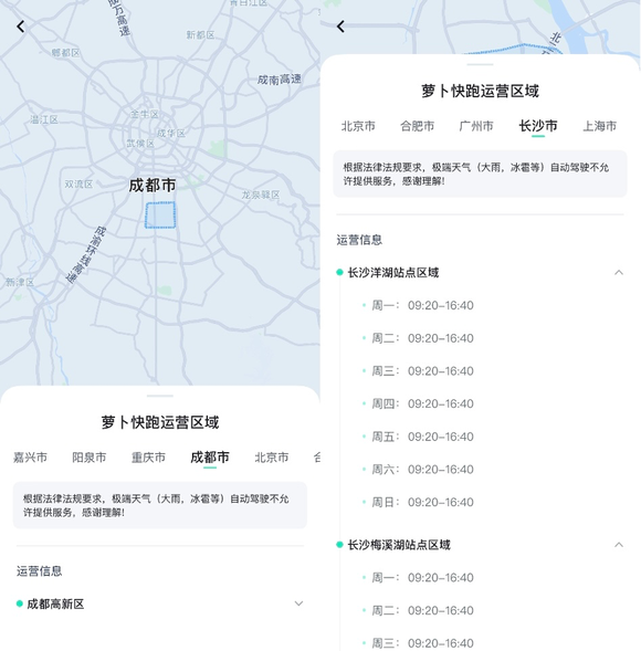 具体来说,萝卜快跑目前总共在11个城市的小部分区域有运营,和试点的差别并不大;参考百度此前立下的,2025年在65个城市里实现运营的目标,如果按一辆车25万成本来算,每个城市100辆就需要16亿多,但出于安全考虑,以及安全员成本;由于授权规模限制,车辆也只能在非极端天气,且固定时间段提供服务。