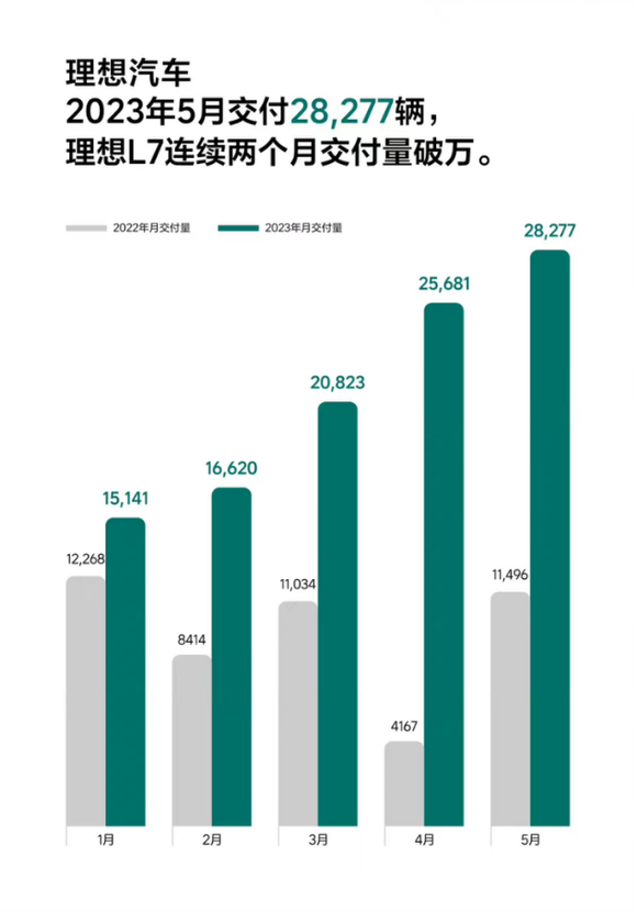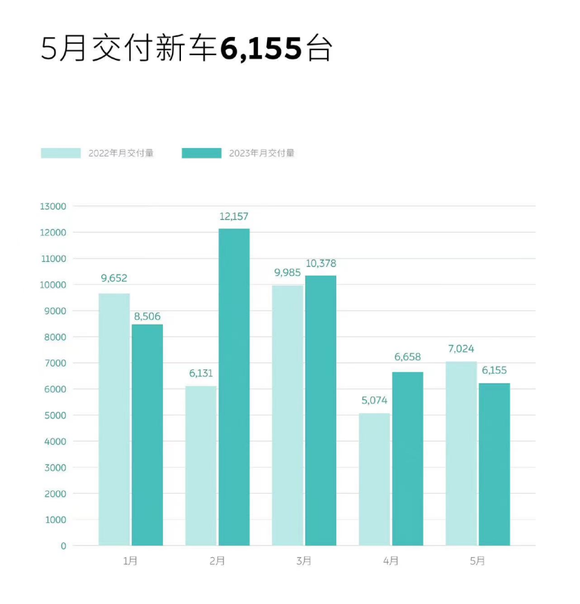 而蔚来汽车5月交付6155辆,同比下降12%,环比下降8%。这已经是蔚来面对两个月交付没有过万,也意味着连续两个月交付低于去年的同期水平。其中高端智能电动SUV交付2,396台,高端智能电动轿车交付3,759台。2023年1-5月,蔚来共交付新车43,854台,同比增长15.8%。业内人士认为,下个月蔚来销量能否破万在于刚刚上市的全新ES6的销量情况。