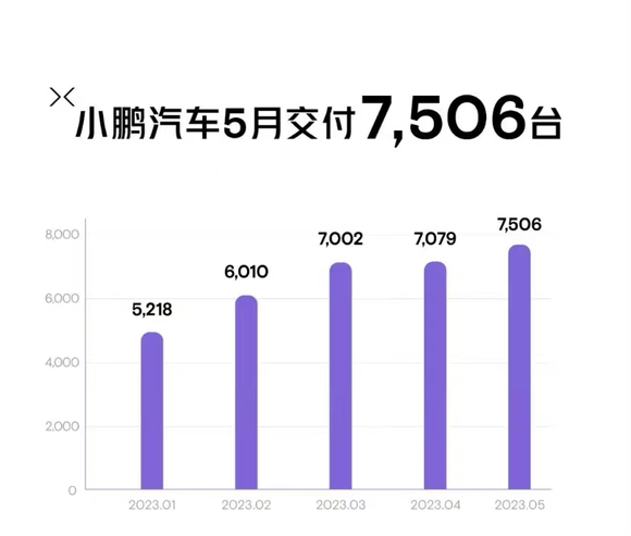 环比增长6%的小鹏汽车,5月交付量为7506台,其中P7i交付量环比大幅增长。小鹏汽车在今年年初交付量低迷之后,终于在3月出现反弹,连续3个月的交付量已经稳定在7千左右。小鹏汽车表示,6月P7i交付速度将进一步提升,而新一代超智驾轿跑SUV—G6将于6月9日开启预售。显然,小鹏G6已经成为决定未来销量的重要车型。