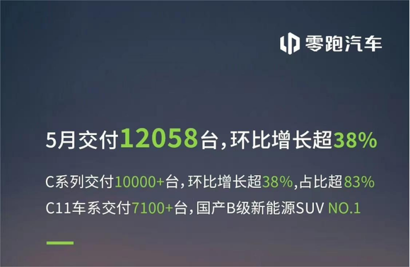零跑、哪吒紧随理想之后,分别获得5月中国市场新势力品牌交付量第二名和第三名。其中,零跑汽车5月销量为1.21万辆,环比增长38%,重新回到万辆俱乐部。哪吒汽车在5月份全系交付13.029台,同比增长18%,其中国内交付10987台,海外2042台,哪吒GT交付1.716台。