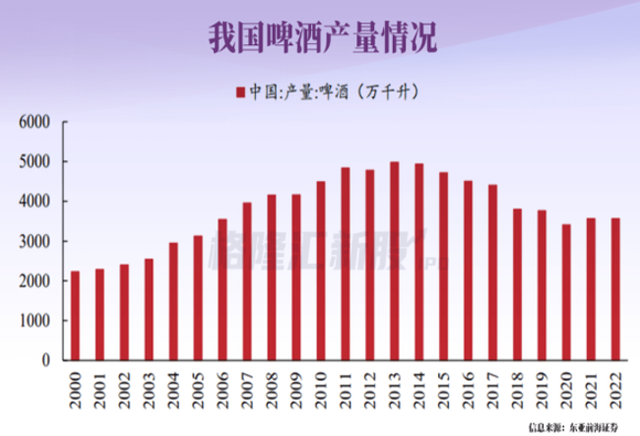 陈成稳面临的是,竞争强手如林,市场饱和。2013年国内啤酒产量约为5000万千升,达到历史最高点后,开启了一路下跌。价格大战硝烟弥漫,个别企业一瓶啤酒价格到达0.5元,啤酒行业由“大家都有钱赚”瞬间进入激烈内卷时期,要活下去唯有做大。
