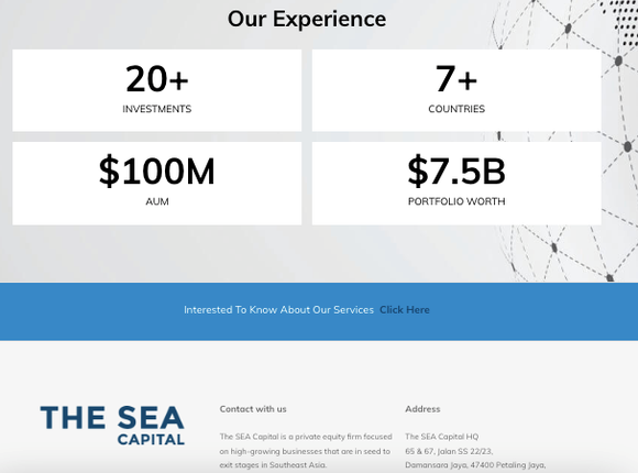 透过官网,我们看到了这家神秘投资机构更多一面,特别是今年4月更新的一篇文章中这样介绍Sea Capital——这是一家总部位于马来西亚吉隆坡的风险投资公司,是Sea Group(也就是冬海集团)——东南亚最著名且发展最快科技公司的子公司。