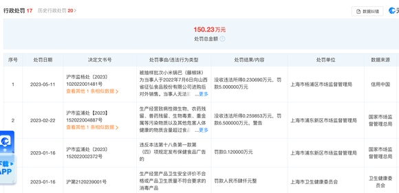 今年以来,盒马多个门店因食品安全问题被处罚,涉及食品霉变生虫、兽药残留及重金属超标问题。天眼查APP显示,盒马自2021年以来因行政处罚金额达到150.23万元,其中多则指向了食品安全问题。
