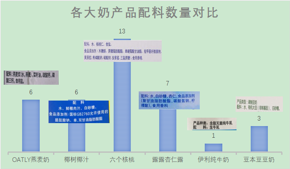 值得注意的是,从动物奶到植物奶,其中多个产品都在主打无添加,品牌方会根据配料表打出0蔗糖、0香精、0脂肪、0防腐剂、0色素等,比如椰汁写着不添加香精,实际添加了非香精的国标食品添加剂,真正做到无添加的只有纯牛奶。