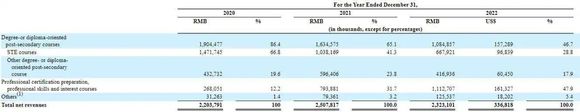 而专业认证准备和专业技能课程收入占比却在逐渐提升,尚德机构去年近一半的收入来自于此。财报显示,2020年,该板块实现收入2.68亿元,营收占比仅为12.2%,而在2022年,该板块实现收入11.13亿元,营收占比达47.9%。