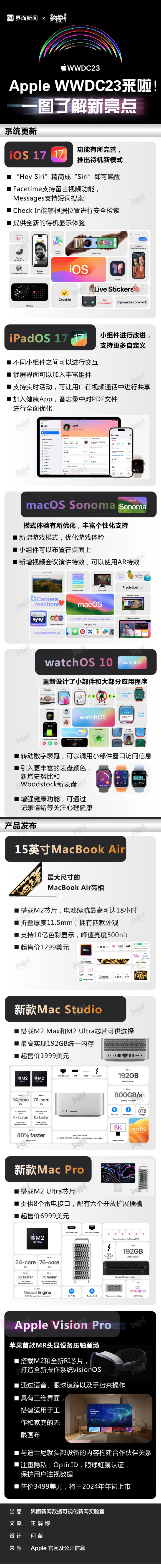 数据 | Apple WWDC23来啦!一图了解新亮点
