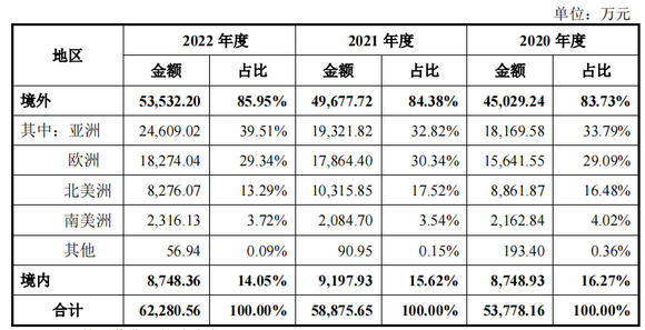 而向贸易型客户销售模式收入,近几年基本保持稳定上升态势。由2020年的1.7亿元,上升至2022年的2.17亿元,占比则上升至34.9%。