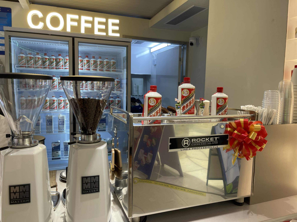 茅台冰淇淋旗舰店的咖啡机/时代周报记者摄