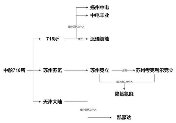 而后又开枝散叶,技术人员出走和繁衍,衍生出了山东赛克赛斯氢能、北京中电丰业、凯豪达。随着氢能产业的火热,除了老面孔外,新能源上市公司纷纷入局,隆基氢能、阳光氢能与三一氢能是三股较大的势力。
