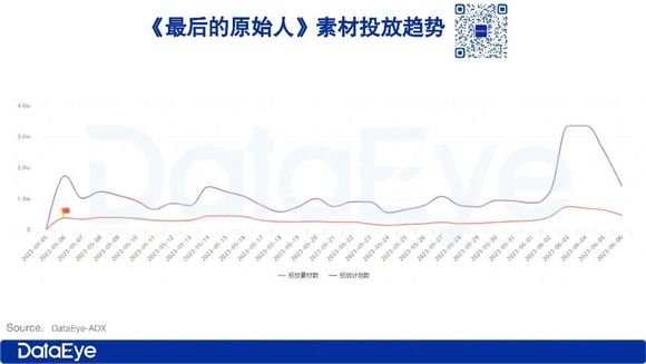 从投放趋势来看,DataEye-ADX数据显示,《最后的原始人》总体投放平稳,6月初又增加了投放力度。
