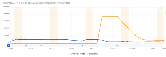 三七今年两款MMO《最后的原始人》《凡人修仙传:人界篇》iOS预估下载同样差异较大。截至6月5号,《最后的原始人》下载量约为245万,《凡人修仙传:人界篇》下载量约为493万。