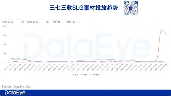 具体来说,上线后经历了两次投放高峰,第一次是5月6日上线当天,投放约4000组素材;第二次是6月初,投放6000-7000组素材。该游戏持续投放,日均投放约3000组。