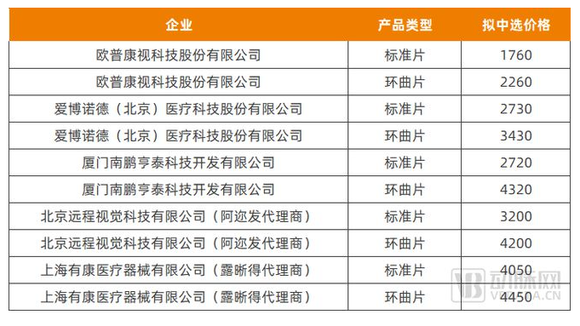 角膜塑形镜集采拟中选产品和价格,数据来源:河北省医保局
