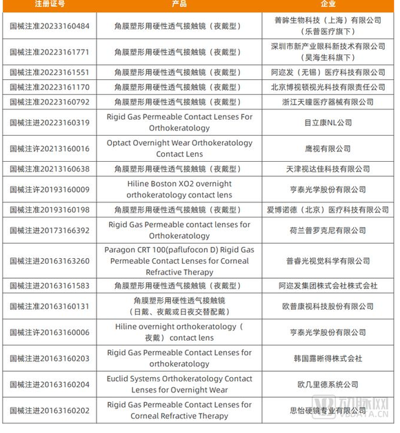 已获批的角膜塑形镜产品,资料来源:国家药监局