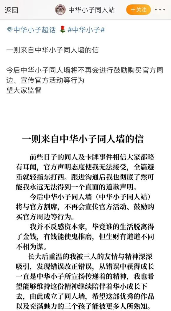 无独有偶,近日同属“童年回忆”的《中华小子》,因官方描图同人作、将盗图作品直接用于售卖周边而备受质疑,导致其同人站发布“不再帮助官方宣传、鼓励周边购买”的割席声明。《蓝猫》和《中华小子》的状况,足以证明一些童年IP的官方运营,与粉丝需求存在错位。